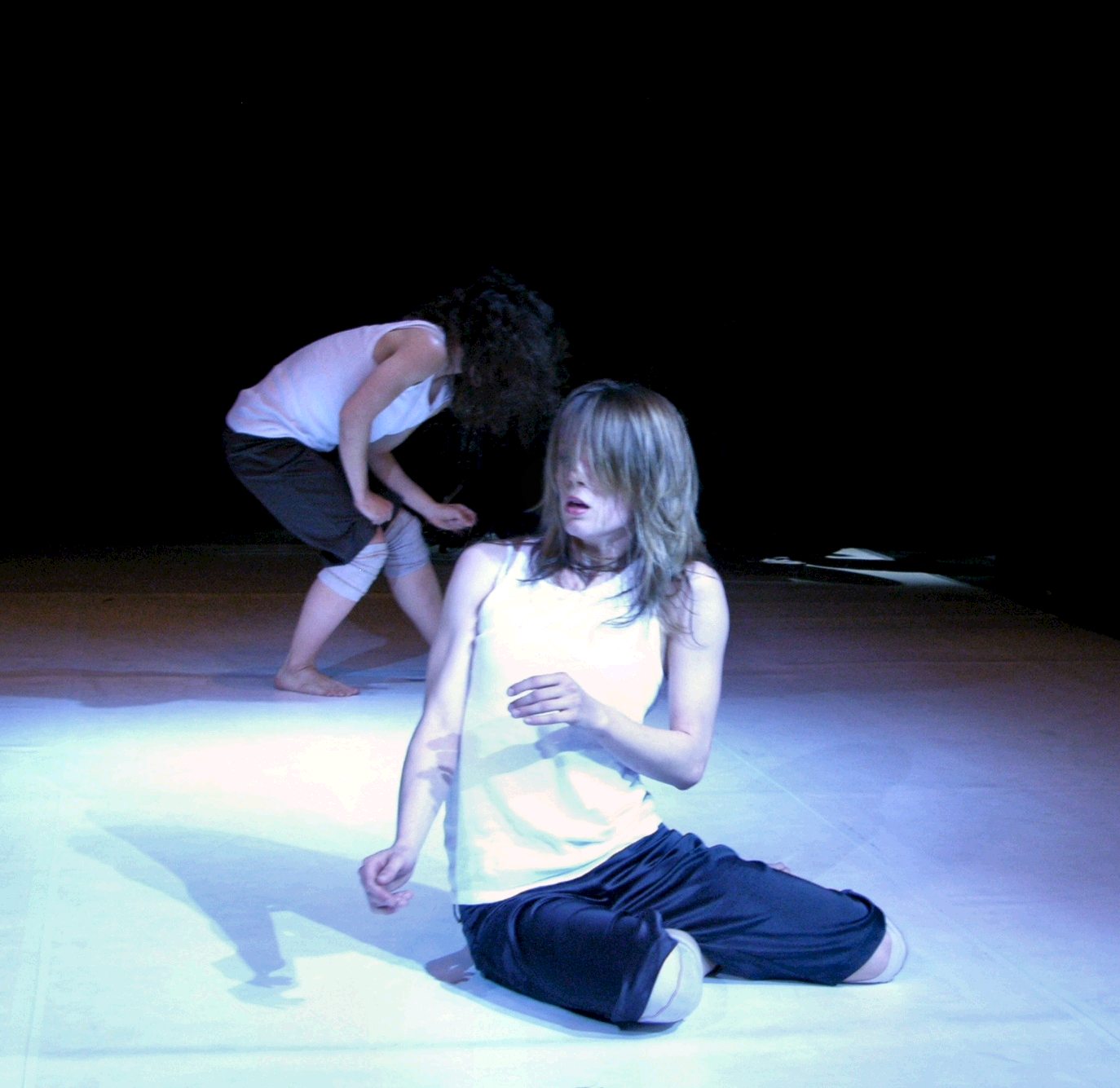 These are the only words that the dancers exchange during the piece. The story is about two women on the run, attached to each other by a common fate, and about their interaction. The character of their relationship was intended to remain open, as Cynthia revealed in a discussion with the audience which she offered after the performance, and it should leave enough room for the fantasy of the spectators. The announcement of the performance was more specific, stating that the women make use of the "animalistic and overwhelming power of the dance to find a way back to each other" (my translation from German).